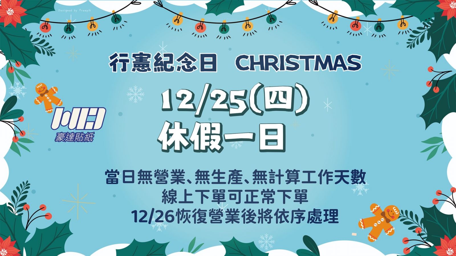 行憲紀念日12/25休假一日